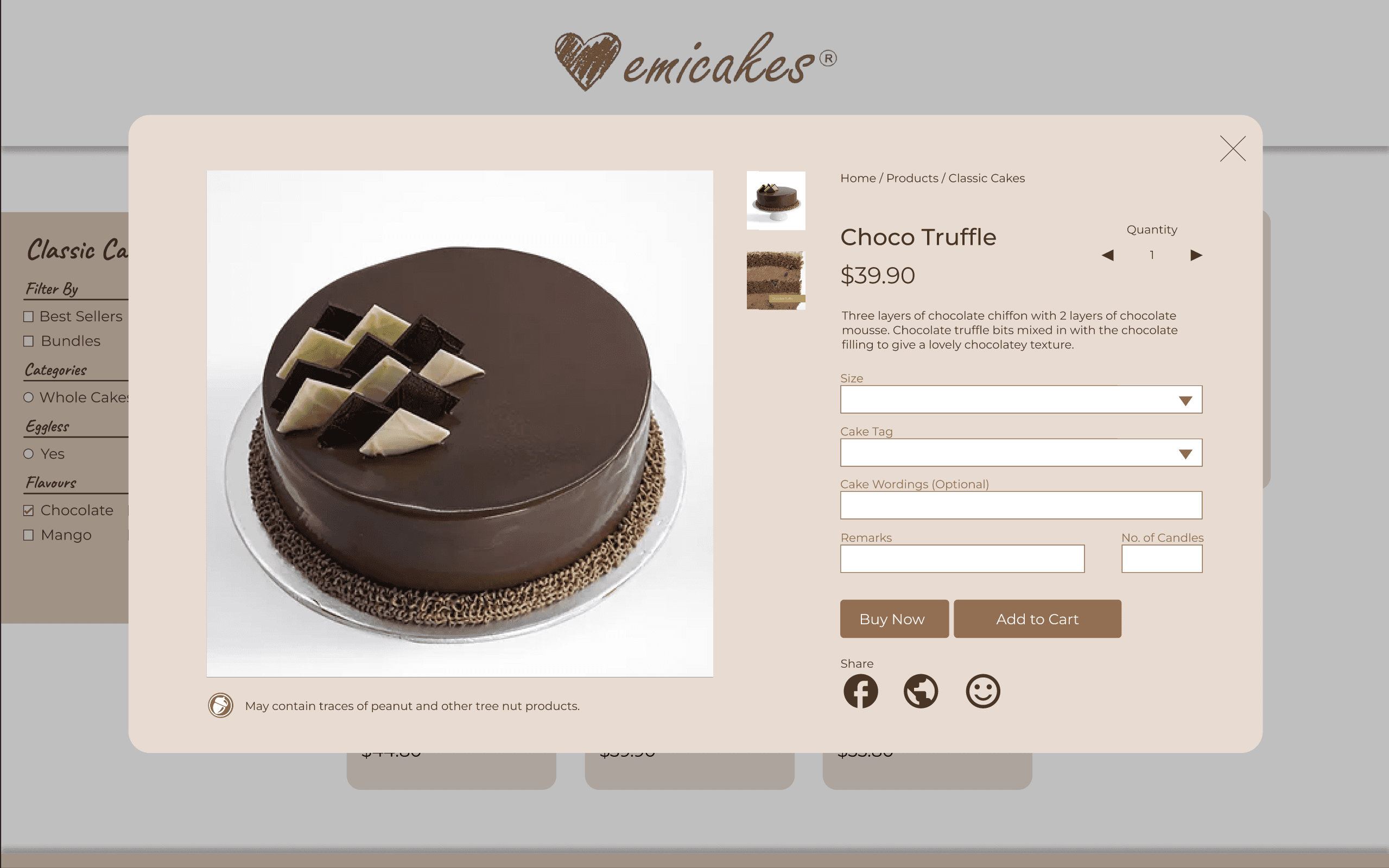 Emicakes' website was not user-friendly, and it did not have intuitive functions for both new and frequent users.